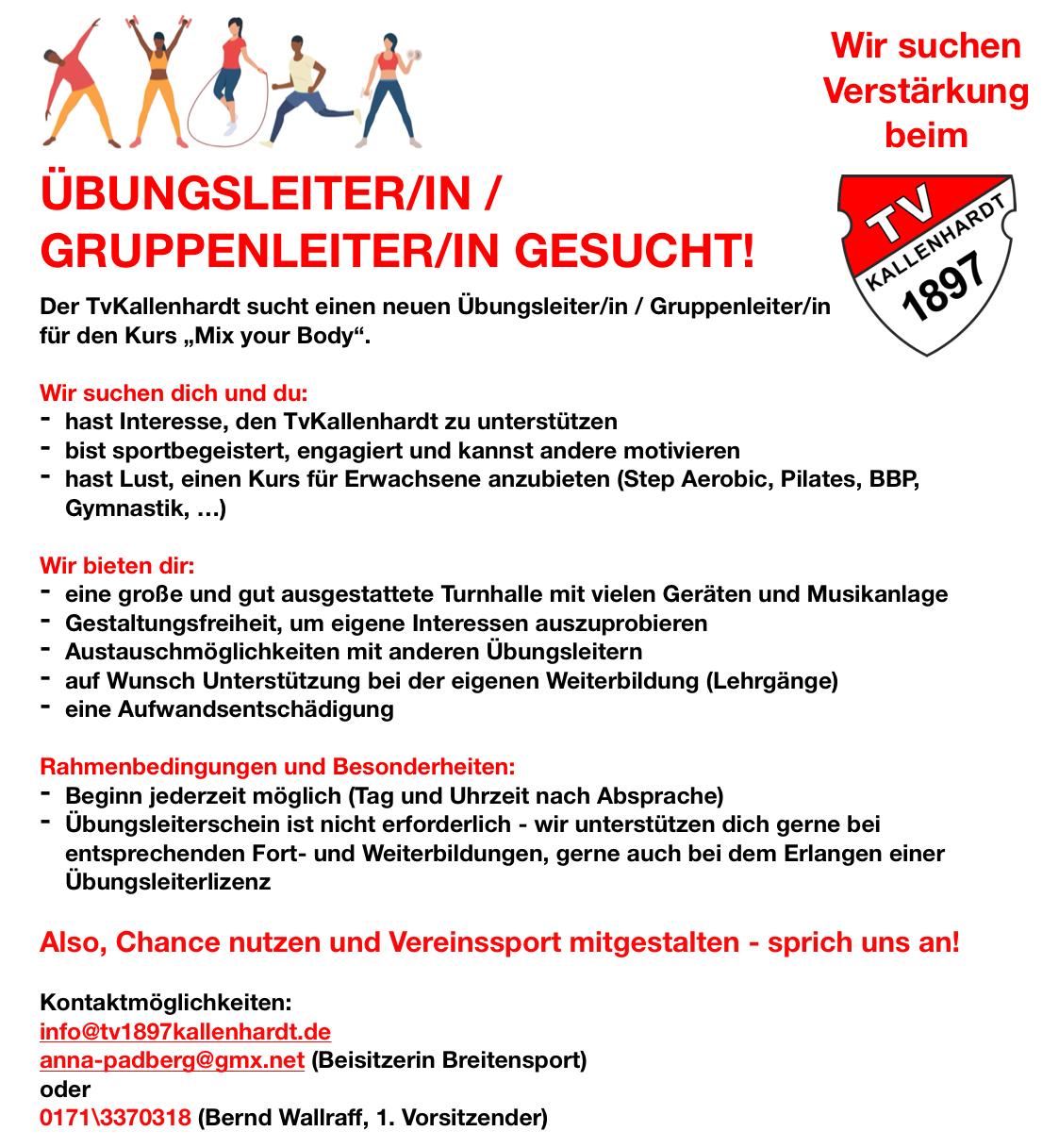 Übungsleiter für den Kurs „Mix your Body“ gesucht!